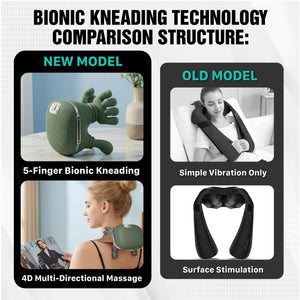 Experience a massage that goes beyond vibration. The Bionic 5-Finger Design features five independent soft silicone nodes that grip, knead, and release in 8 multi-directional movements recreating the natural motion of professional massage hands.